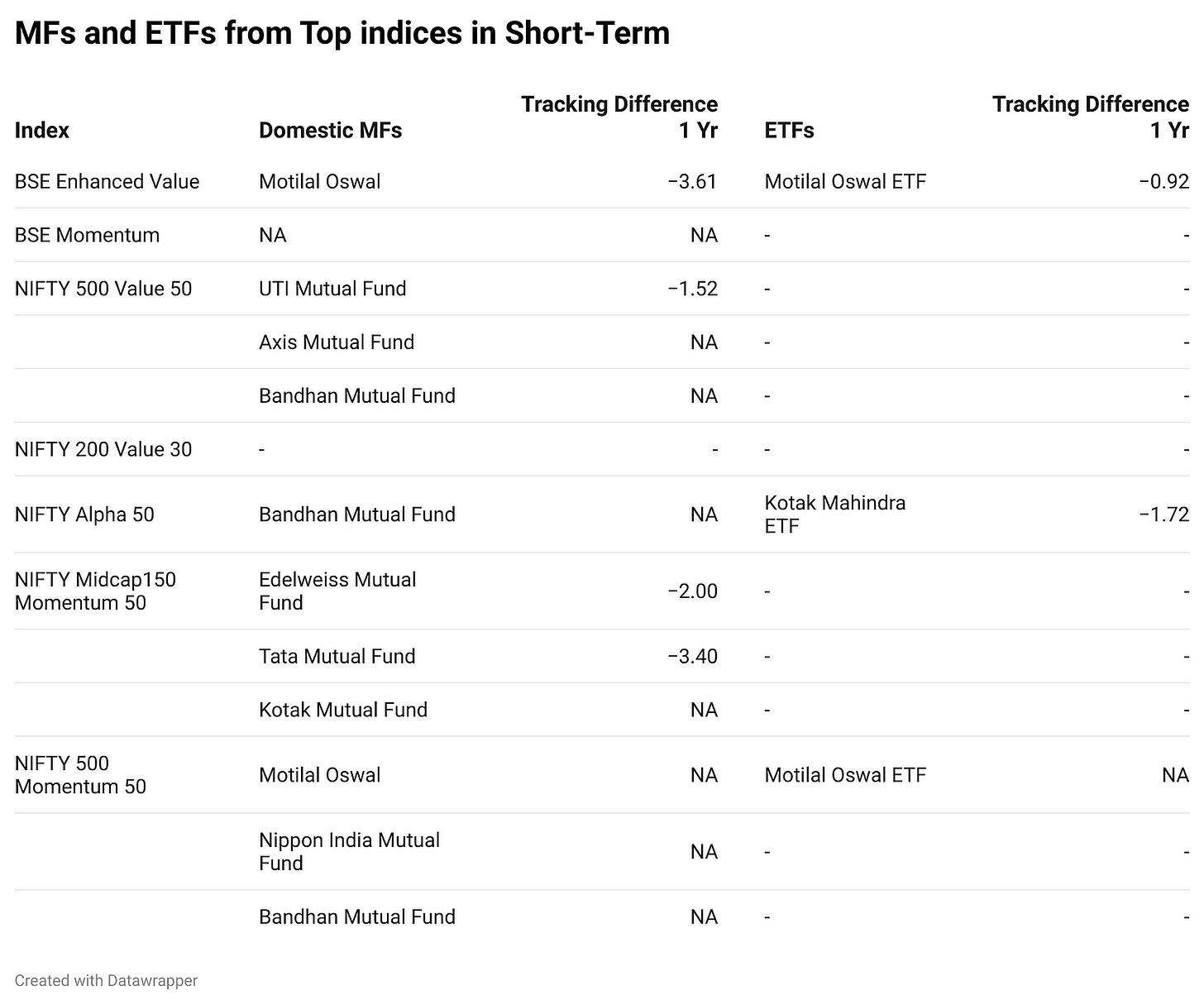 The NSE offers a broader range of factor indices, including multi-factor indices. We examined their performance over the one-year period.