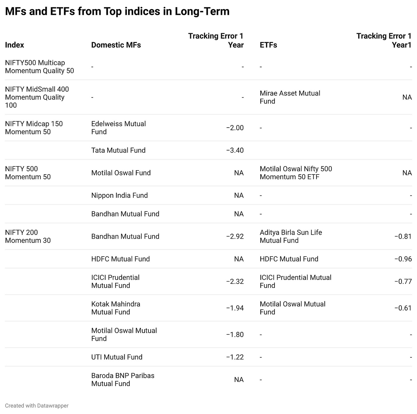 NIFTY_A50 (Alpha) shows strong performance at 44.35%, and NIFTY 500_M50 (Momentum) at 42.83%